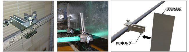 誘導鉄板を鉄筋に溶接せずに簡単に固定できる金物です。